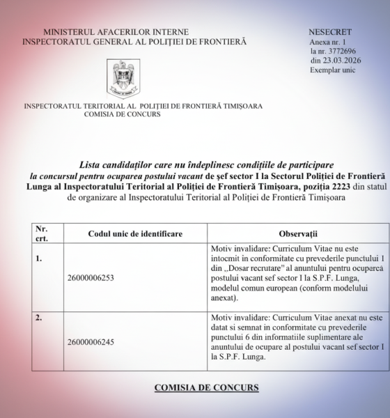 Circul „meritocrației” a lovit din plin la Inspectoratul Teritorial al Poliției de Frontieră (ITPF) Timișoara, unde un concurs banal pentru...