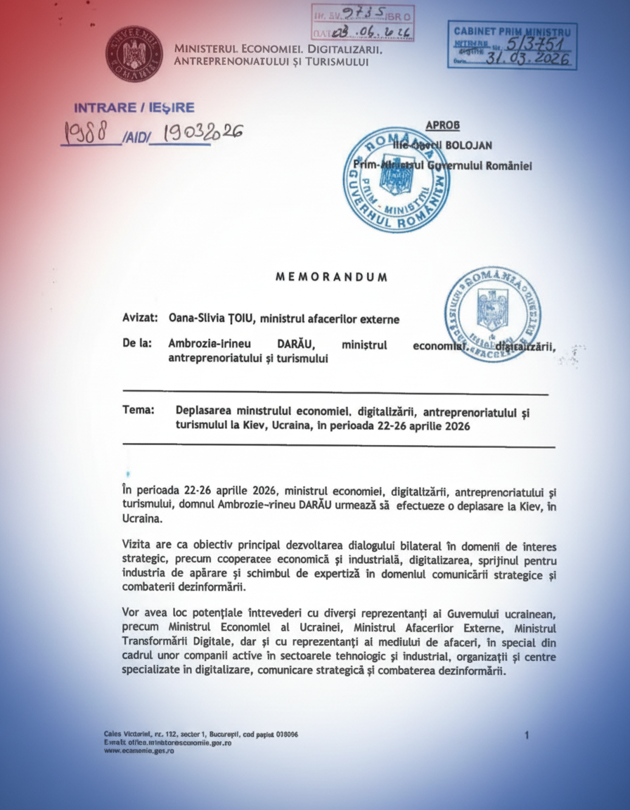 Potrivit documentelor oficiale analizate de redacția noastră, domnul Darău a plecat la Kiev (22-26 aprilie 2026) complet „singur-singurel”. Ordinul de ministru e clar ca lumina zilei: nicio suită de specialiști, niciun consilier tehnic, niciun expert care să știe diferența dintre o piuliță și un tanc.