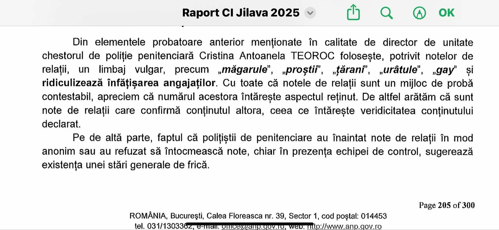 Nu vorbim de glume nevinovate la o cafea, ci de jigniri sistematice, consemnate în note oficiale, care au creat – conform rapoartelor de control – un mediu de lucru toxic, cu impact direct asupra stării de sănătate a unor polițiști de penitenciare.