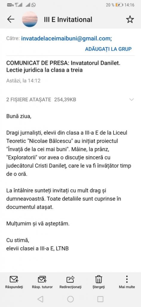 Dupa cate se pare, judecatorului Vasilica Danilet nu-i ajunge faima din randurile colegilor de proteste de pe trepte si ale scandalagiilor #rezist din strada. De data aceasta, Cristi Danilet vrea sa devina vedeta si printre scolarii de ciclu primar. Trubadurul de la Tribunalul Cluj a fost invitat sa se produca in fata unor elevi de clasa a treia de la liceul clujean „Nicolae Balcescu”. Mai precis, elevii „vor avea o discutie sincera cu judecatorul Cristi Danilet, care le va fi invatator timp de o ora” (vezi facsimil). De ce sa fim hateri si sa-l bombanim pe Vasilica, gandindu-ne ca le va impuia capul bietilor copii cu sloganuri #rezist? Mai bine sa gandim pozitiv: poate va da Dumnezeu si nu-l va apuca pe Danilet cantatul in fata elevilor, precizeaza colegii de la Lumea Justitiei! (Corina U.).
