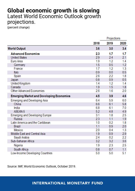 ,Economia globală se află într-o încetinire sincronizată și, ne revizuim încă o dată ÎN JOS creșterea economică pentru 2019”