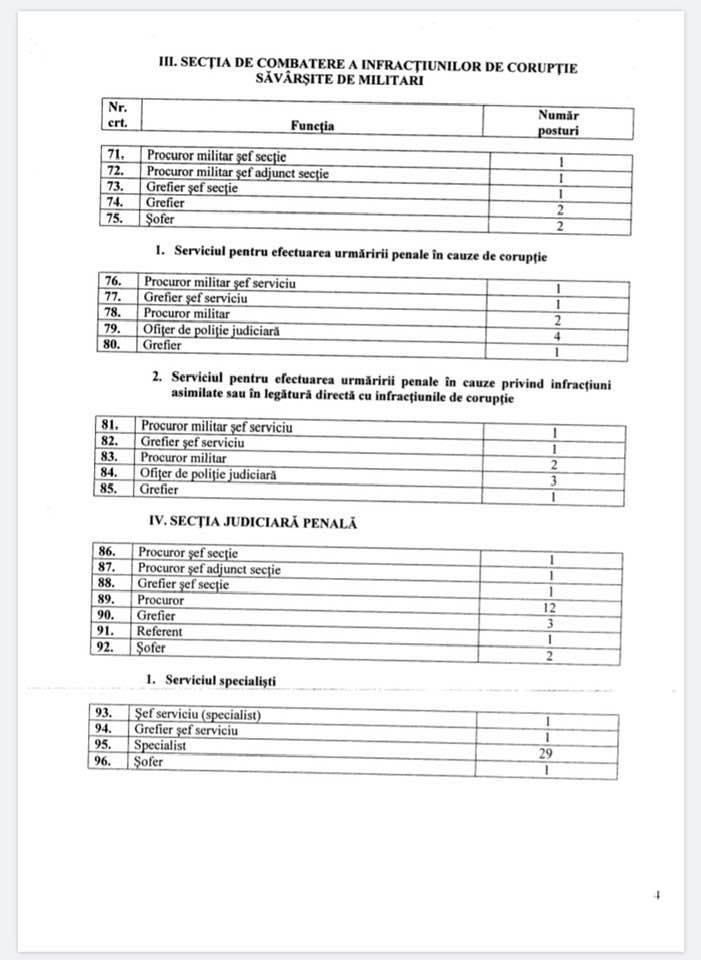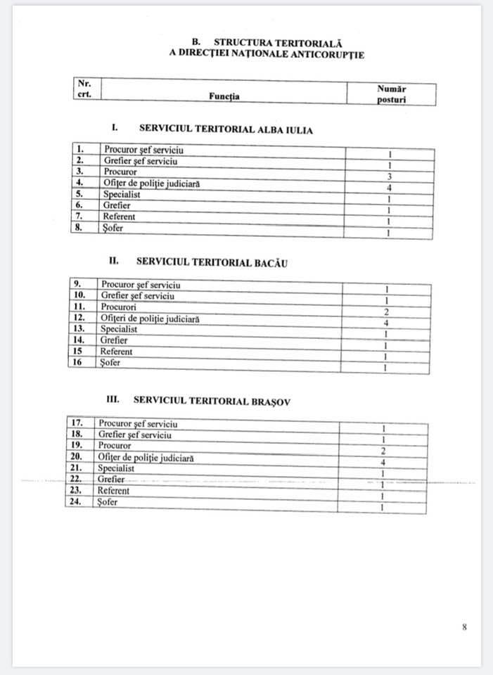 De observat că Serviciul pe magistrați din DNA a fost mai important ca alocare de resurse decât: combaterea corupției în administrația centrală, infracțiunile din achizițiile publice, prejudiciile aduse bugetului public, frauda din fonduri UE, infracțiunile săvârșite de militari, și câteva dintre serviciile teritoriale ale DNA. De altfel, ulterior Secția pe militari din DNA a fost trasformată în Serviciu, pentru că Secția pe infracțiunile săvârșite de militari deranja SRI.