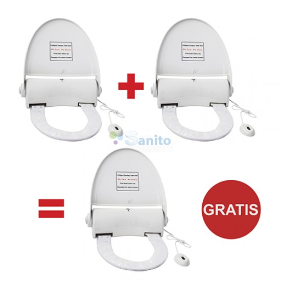 - Multe capace toaleta cu senzor sau cu buton de la Sanito vin la pachet cu role de rezerva sau cu alte produse destinate curateniei si igienizatii in bai si toalete. Astfel, putem opta pentru un pachet ce cuprinde capacul si un dozator de sapun lichid, uscator pentru maini sau odorizant precum si multe alte optiuni.