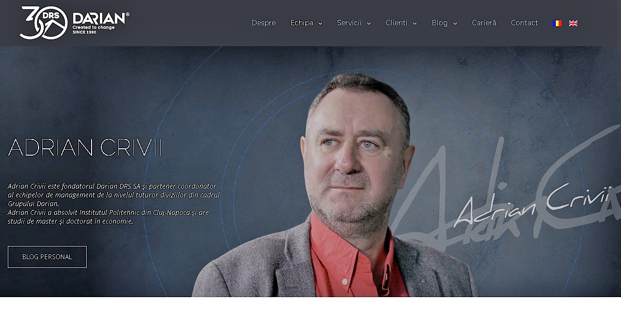 Adrian Crivii este doctor în economie, CEO la grupul de firme DARIAN – companie clujeană independentă, cu birouri în toată ţara. DARIAN este pe piaţă de 30 de ani şi a lucrat cam cu toate firmele mari din România. Adrian Crivii a fost preşedintele ANEVAR şi, printre altele, este vicepreşedinte al Asociaţiei Mondiale a Organizaţiilor de Evaluatori.