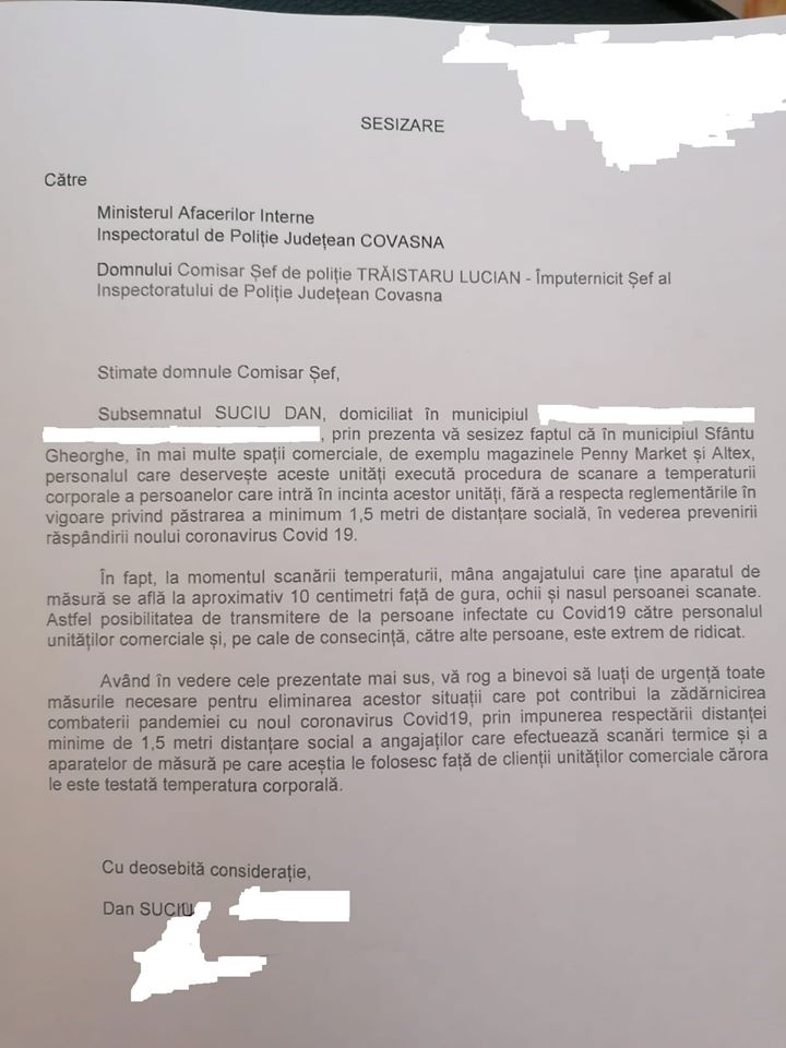 Nu am nimic împotriva aplicării procedurii de măsurare a temperaturii corporale în situația intrării în spațiile închise, cu condiția să fie realizată în acord cu parametrii stabiliți de normele medicale: camera separată, personal medical instruit, respectarea confidențialității datelor medicale obținute, asumarea de către cadrul medical a păstrării secretului datelor astfel cunoscute, și eliberarea unei dovezi asumate cu privire la rezultatul obținut, precizeaza Daniel Caraman pe pagina sa de socializare. (Cristina T.).