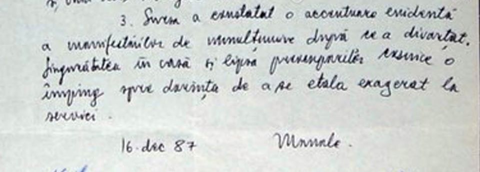 Sursa foto: pressone – notă olografă a sursei Securității Manole, cunoscut și ca Academician Mugur Isărescu, din decembrie 1987.
