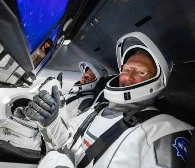 Ei sunt primii astronauţi din ultimul deceniu care pleacă în spaţiu decolând de pe pământ american. Cei doi bărbaţi poartă costume spaţiale proiectate de SpaceX cu ajutorul designerului de costume hollywoodian Jose Fernandez.