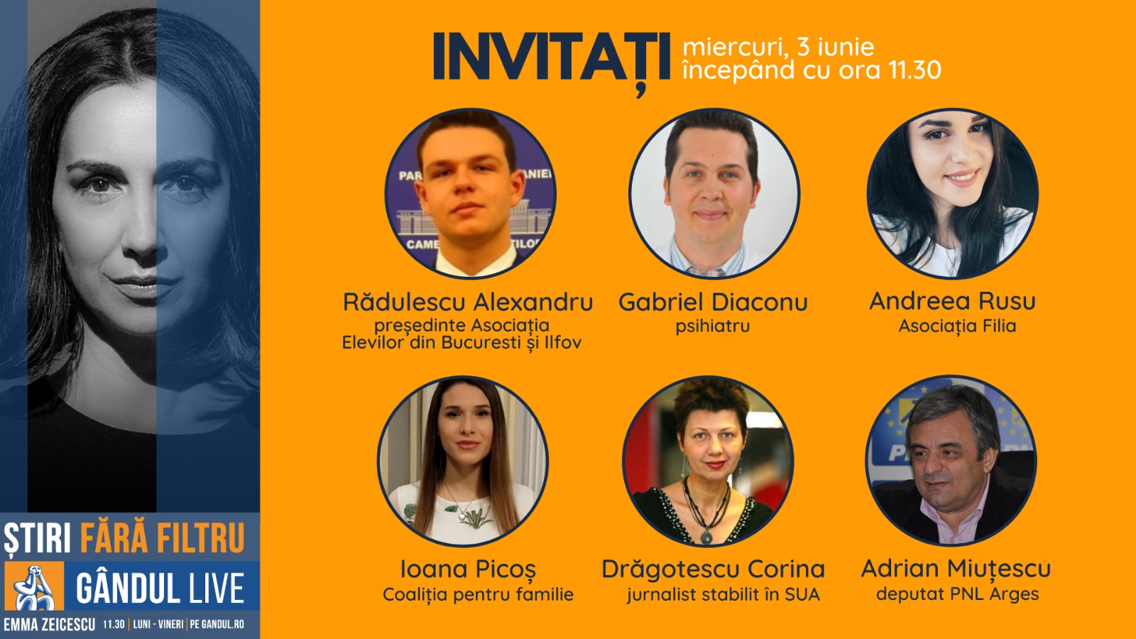 GÂNDUL LIVE. Psihiatrul Gabriel Diaconu și jurnalista Corina Drăgotescu se află printre invitații Emmei Zeicescu, pe 3 iunie, de la ora 11.30