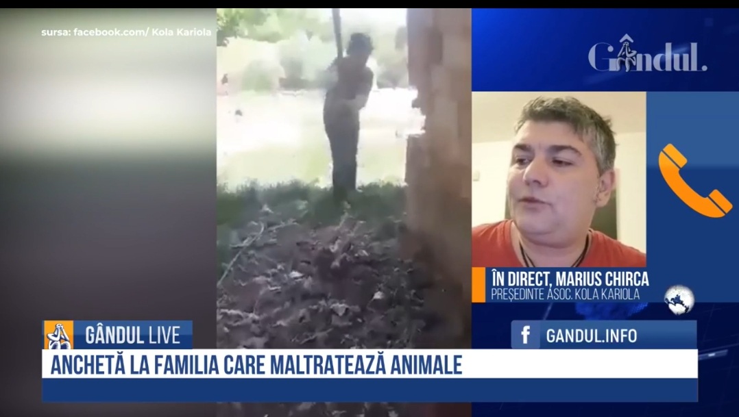 Intervenția lui Marius Chirca la Gândul Live a venit în contextul în care autoritățile se implică în verificarea condițiilor în care sunt tratate animalele din familia în care doi copii, din comunca Papiu Ilarian, județul Mureș au fost filmați în timp ce ucid un pui de cățel, lovindu-l de mai multe ori cu o cazma, iar tot episodul de o cruzime fără margini s-a întâmplat sub ochii unor adulți.
