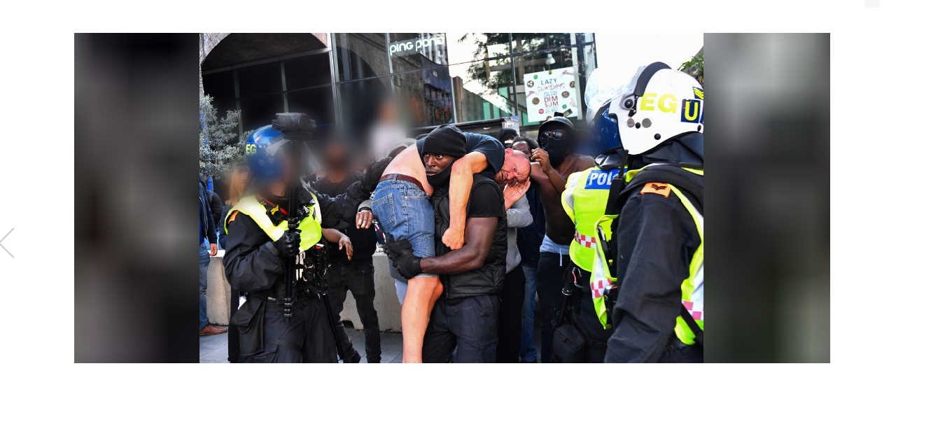 Mai multe persoane au protestat în acest weekend la Londra, iar într-o fotografie a fost surprins momentul în care un bărbat de culoare a salvat din acel haos un protestatar de extremă dreaptă.