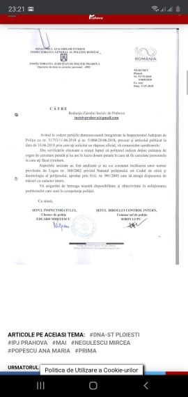 Asteptam un raspuns oficial ca sa stie tara intreaga si cetatenii din Prahova daca nu este o restaurare a „mafiei” procurorului Negulescu Mircea, ca noi asa avem datele si indiciile certe...