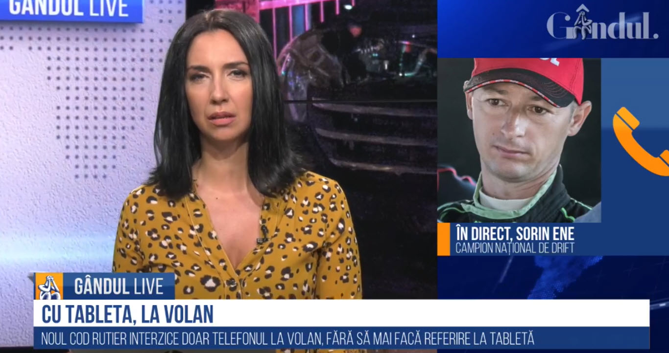 Sorin Ene, campion național de drift, a vorbit, la GÂNDUL LIVE, despre ultimele modificări din Codul Rutier 2020, care permit folosirea tabletei la volan, în timp ce telefonul rămâne pe lista obiectelor interzise.