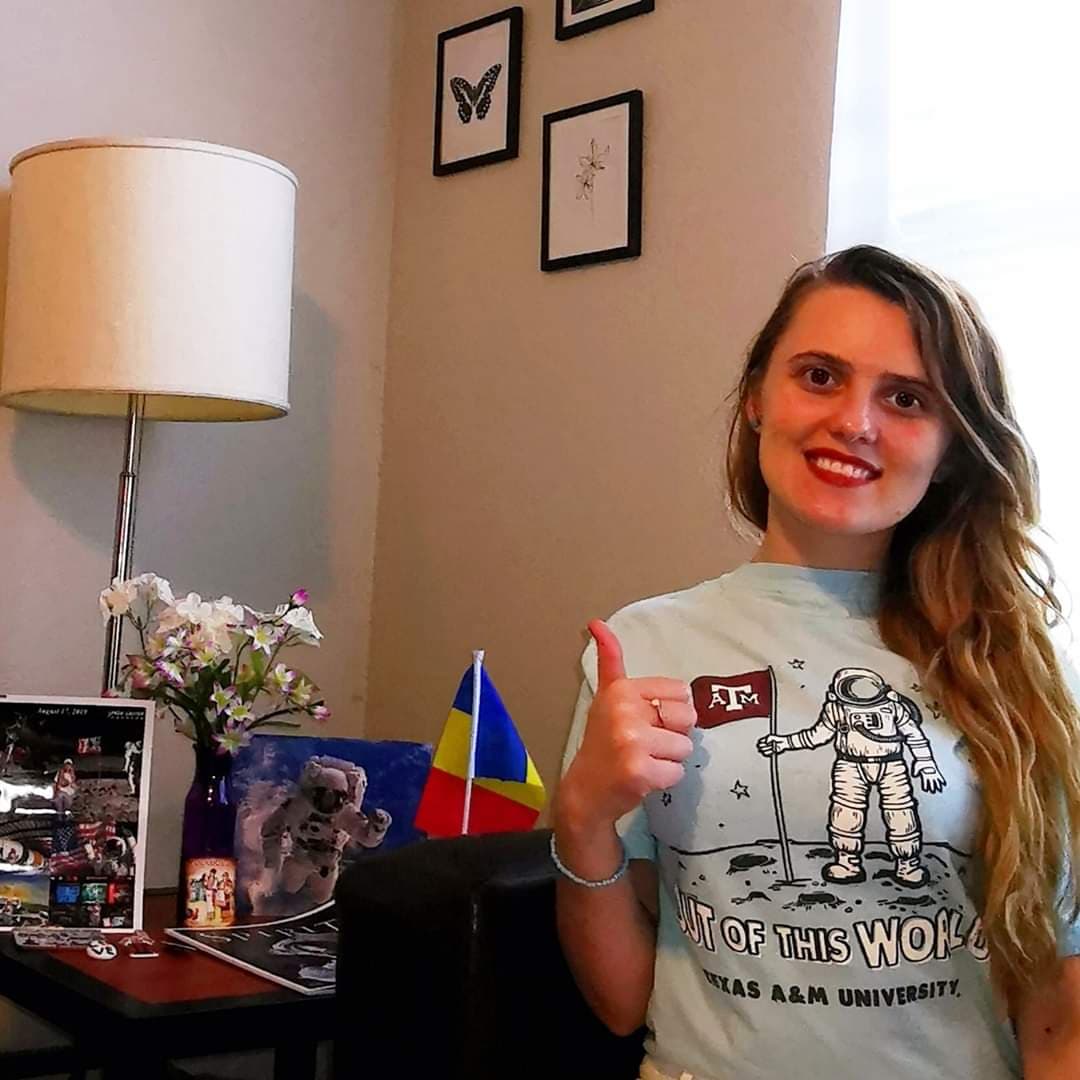 Câteva luni mai târziu am mers la studii la Texas A&M, a space-grant institution, hotărâtă să generez un impact în ceea ce privește spațiul cosmic. La competiția Student Conference on Național Affairs (SCONA) l-am cunoscut pe astronautul NASA Mike Fossum, absolvent al universității mele și în prezent COO la Universitatea Texas A&M din alt oraș, Galveston. M-a inspirat carieră dumnealui, așa că la final i-am adresat public o întrebare și m-am apropiat pentru un autograf și o poză. A fost impresionat de parcursul meu profesional din România exact în Texas.
