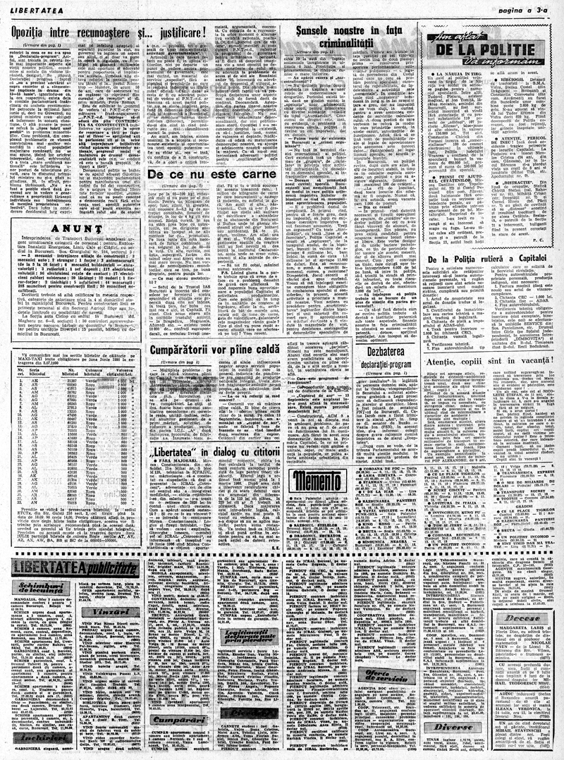 Ziarul Libertatea din 11 iulie 1990 pag. a 3-a