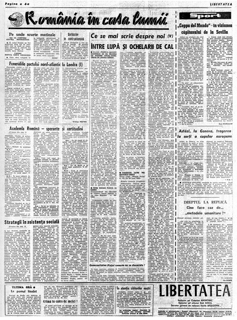 Ziarul Libertatea din 11 iulie 1990 pag. a 4-a