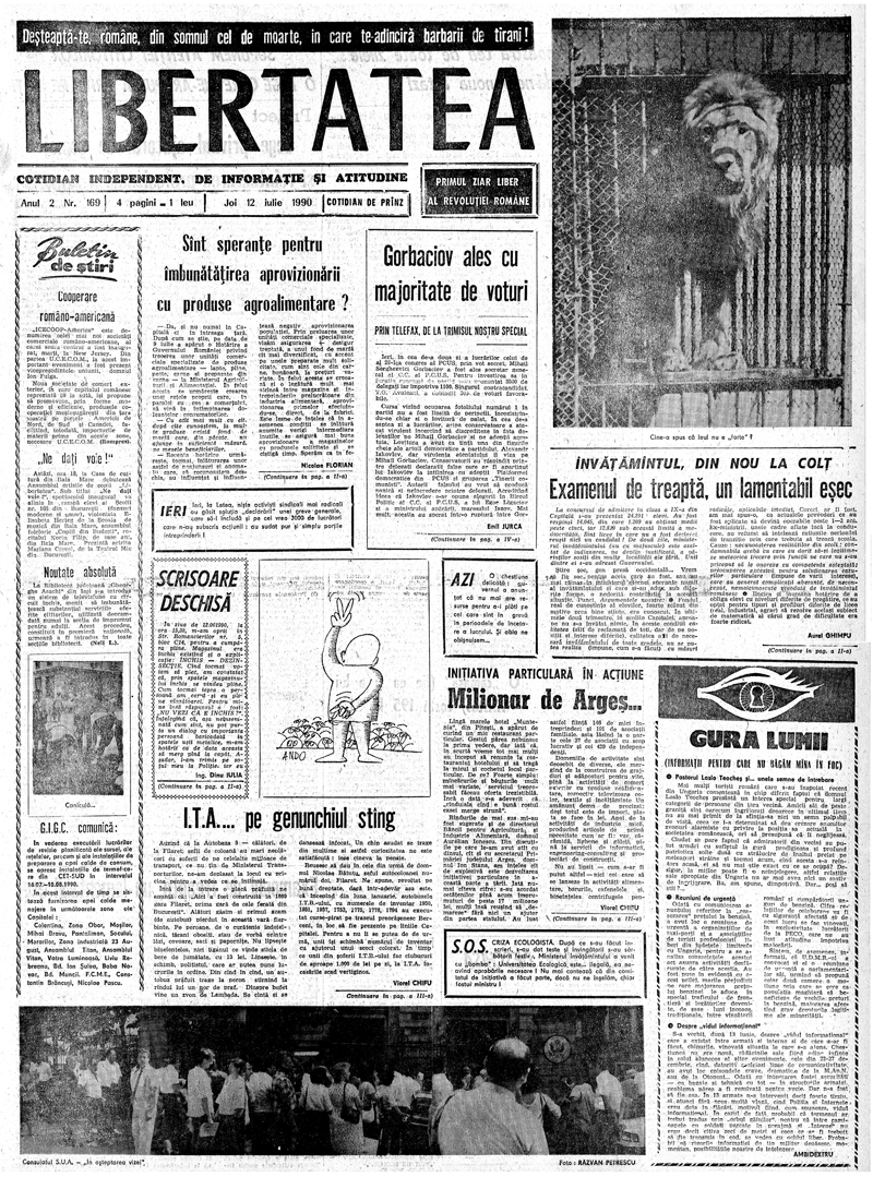 ​Ziarul Libertatea din 12 iulie 1990 pag. 1-a