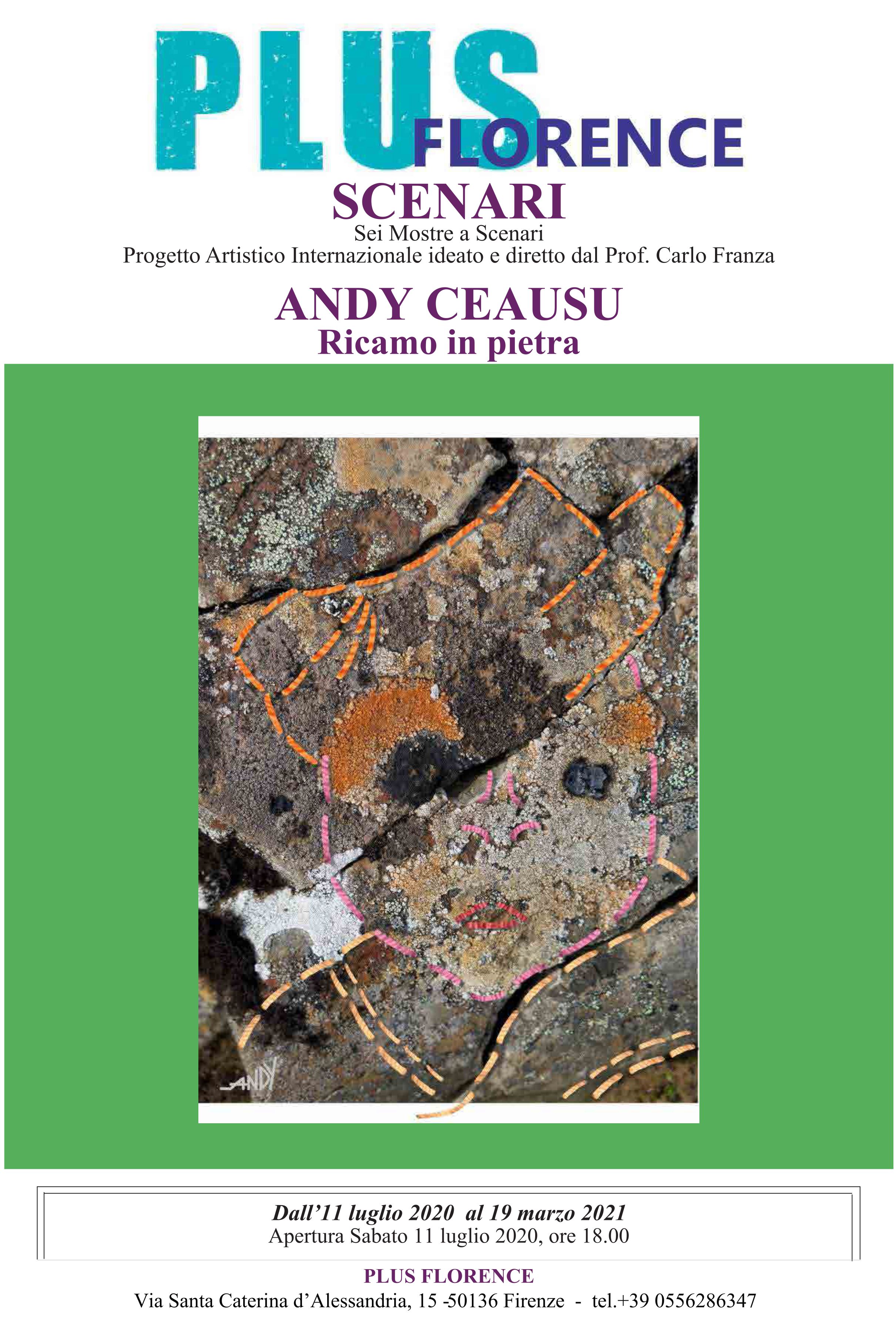 În cadrul proiectului „Scenarii” conceput de ilustrul istoric de artă modernă și contemporană Prof. Carlo Franza, personaj internațional și critic al ziarului „Il Giornale”, în paralel cu expoziția „Primavera vien danzando” a Eugeniei Serafini mâine la Florența la Plus Florence expoziția „Ricamo in Pietra” unde douăzeci de lucrări ale lui Andy Ceausu întorc frumusețea tăcută, dar sugestivă a peisajului stâncos situat în nord-estul Islandei, exact în Borgarvirki. În lucrări este prezentată o broderie care spune frumusețea naturii dintre roci și copaci și plante, sporind puterea și schimbarea prin sinergia elementelor precum apa, aerul și focul.