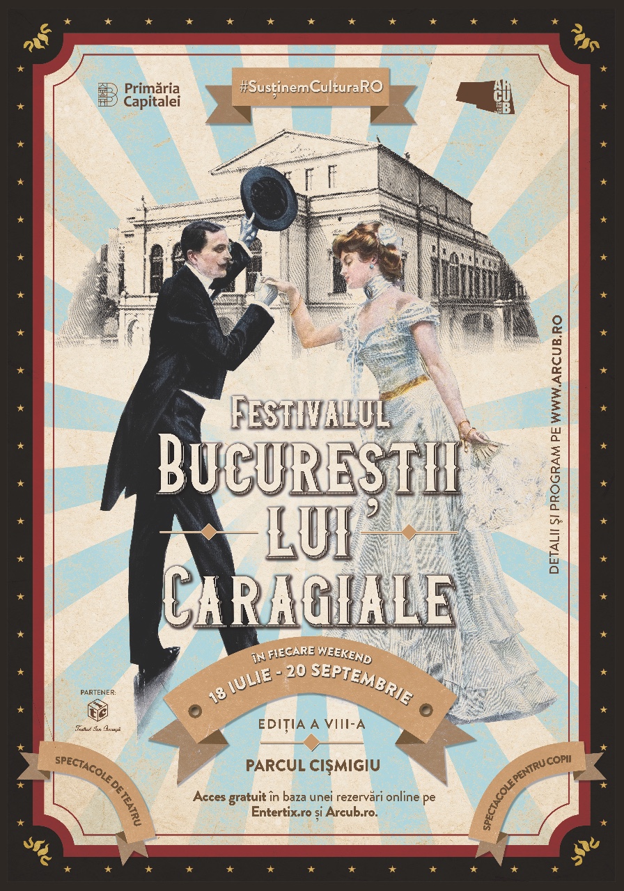 Primăria Capitalei prin ARCUB organizează, în perioada 18 iulie – 20 septembrie, Festivalul „Bucureştii lui Caragiale” pe scena amenajată în Parcul Cişmigiu. După o lungă perioadă de cultură online, cea de-a opta ediţie a festivalului „Bucureştii lui Caragiale” oferă bucureştenilor două luni de teatru în aer liber cu peste 30 de spectacole din repertoriul a 20 de teatre din Capitală.