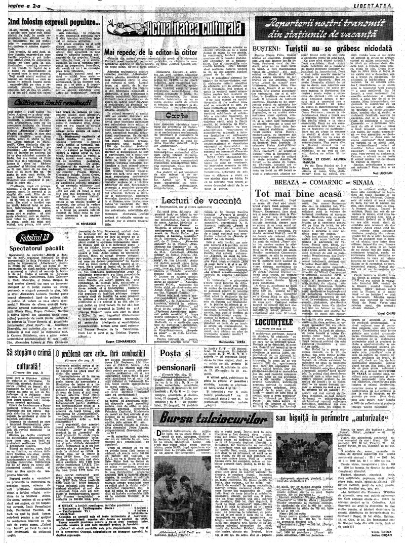 Aşteptăm să fim bombardaţi cu scrisori de la posturile de televiziune din New York, Londra şi Paris pentru a ne solicita preluarea pasionantei secvenţe transmise aseară la „Actualităţi” despre recoltatul şi depozitarea grîului la silozul Banu Mărăcine!