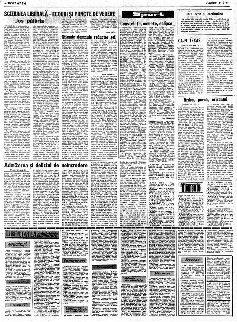 Onestitatea informaţiilor si a opiniiior consemnate in cotidianul dv., fapt pe care l-am semnalat si cu alte prilejuri si pentru care meritaţi stima cititorilor dv. constanti, mă determină să mă adresez, din nou, dv. pentru a-mi exprima unele nelămuriri, chiar dacă vi se vor părea lipsite de importanţă în legătură cu interviul publicat în ziarul dv. din 4 iulie a.c., interviu acordat de dl. Radu Cîmpeanu, preşedintele P.N.L,. cotidianului „L’Unita” din 18 iunie a.c.