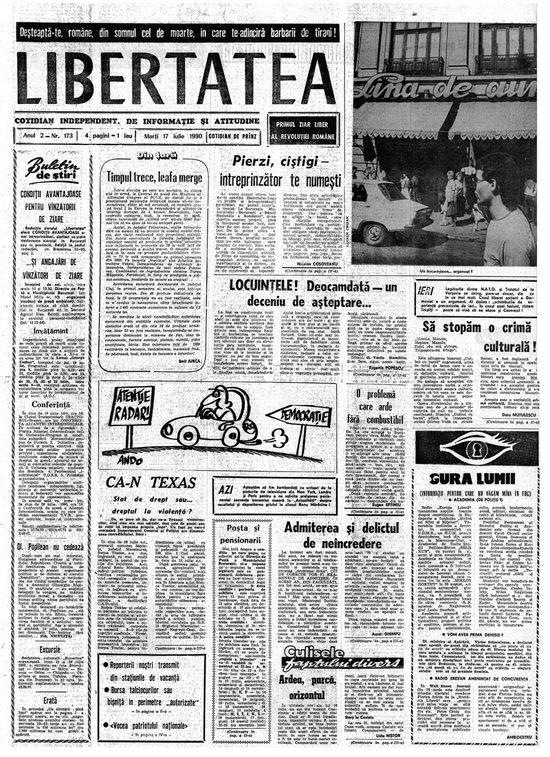 Ziarul Libertatea din 17 iulie 1990 pag. a 2-a