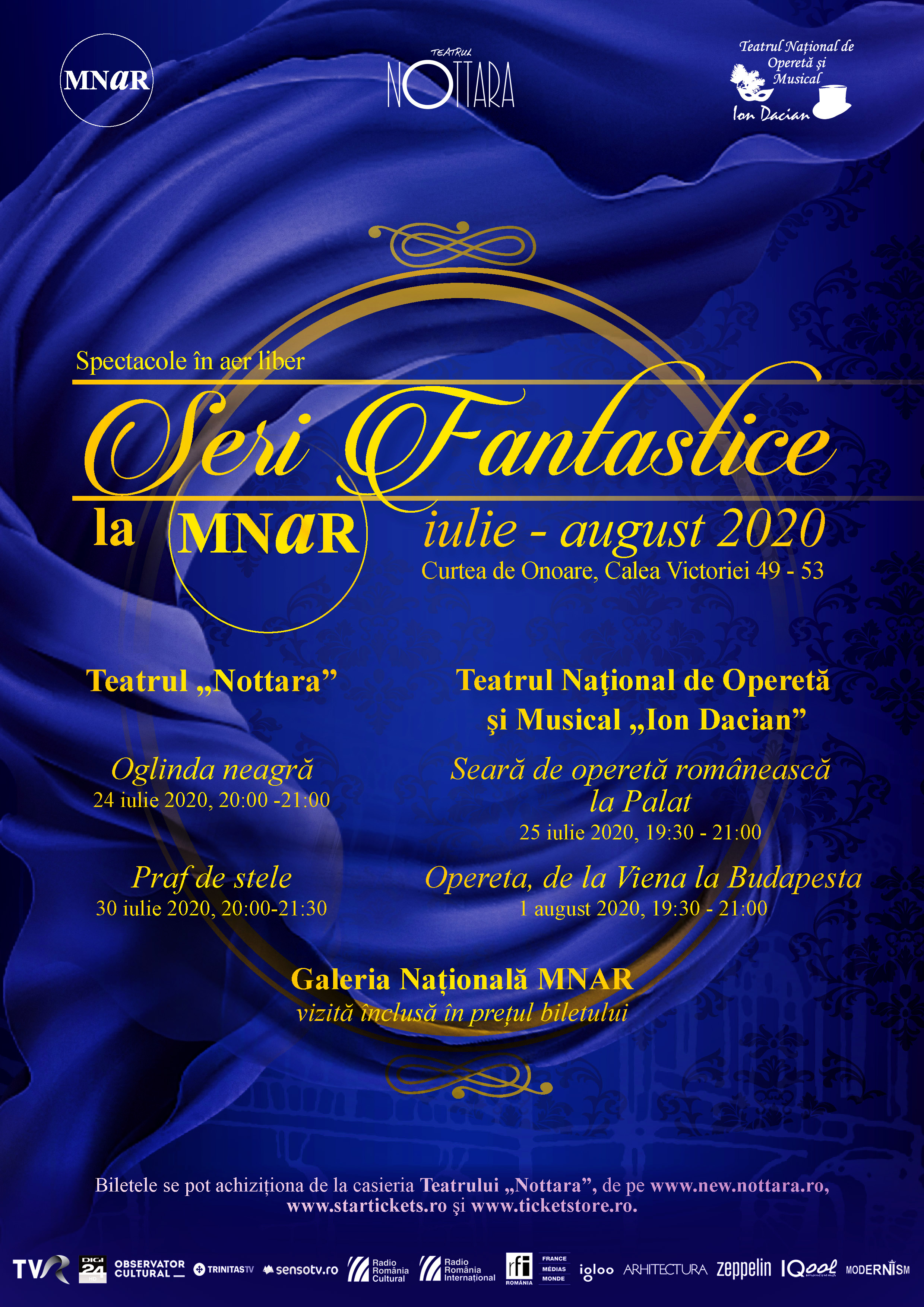 Muzeul Național de Artă al României va găzdui în perioada următoare o serie de evenimente culturale, în cadrul programului „Seri fantastice” desfășurat în parteneriat cu Teatrul „Nottara” și cu Teatrul Național de Operetă și Musical „Ion Dacian”. În cadrul parteneriatului, instituțiile organizatoare de spectacole vor susține în perioada 24 iulie – 1 august câte două reprezentații în Curtea de Onoare a MNAR.