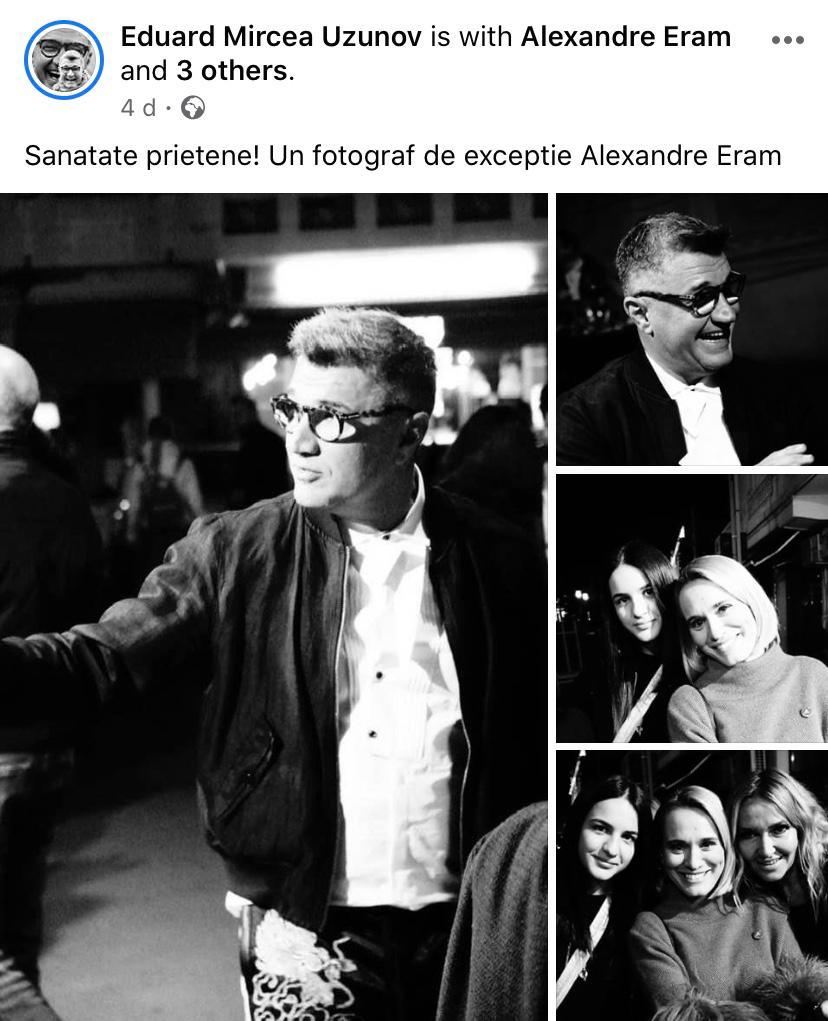Într-o postare pe rețelele sociale, Eduard Mircea Uzunov, fondator și președinte al companiei imobiliare Regatta Real Estate, a postat o serie de fotografii care sunt realizate de Alexandre Eram, însoțite de mesajul: „Sănătate prietene!”.
