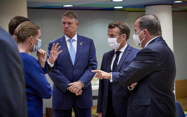 Într-una dintre fotografii, președintele României este surprins alături de Mette Frederiksen, premierul danez, Emmanuel Macron, președintele Franței, și Stefan Lofven, premierul suedez. Deși ceilalți lideri europeni poartă mască, Klaus Iohannis este singurul fără un astfel de echipament de protecție.