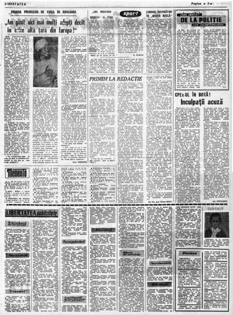 — Citesc atît ziarul „Libertatea”,cît şi alte cotidiane care abordează în mod sincer şi realist problemele Capitalei. Am şi rugat pe colaboratorii mei ca peste două-trei zile, să-mi pregătească un buletin de informare în, legătură cu toate articolele ce tratează despre viaţa în oraşul Bucureşti. Fără a spune mai mult despre ziarul „Libertatea” pot afirma că, dacă vom fi într-un permanent şi consţructiv flux de informiaţii, am convingerea că acest ziar va ajuta foarte mult la rezolvarea problemelor Capitalei. (V. CHIFU)