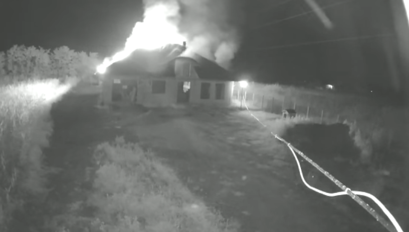 Pe imaginile de supraveghere, se poate observa că un barbat se apropie cu o canistră de benzină în mână și a început să stropească pereții casei, iar ulterior se face disparut.