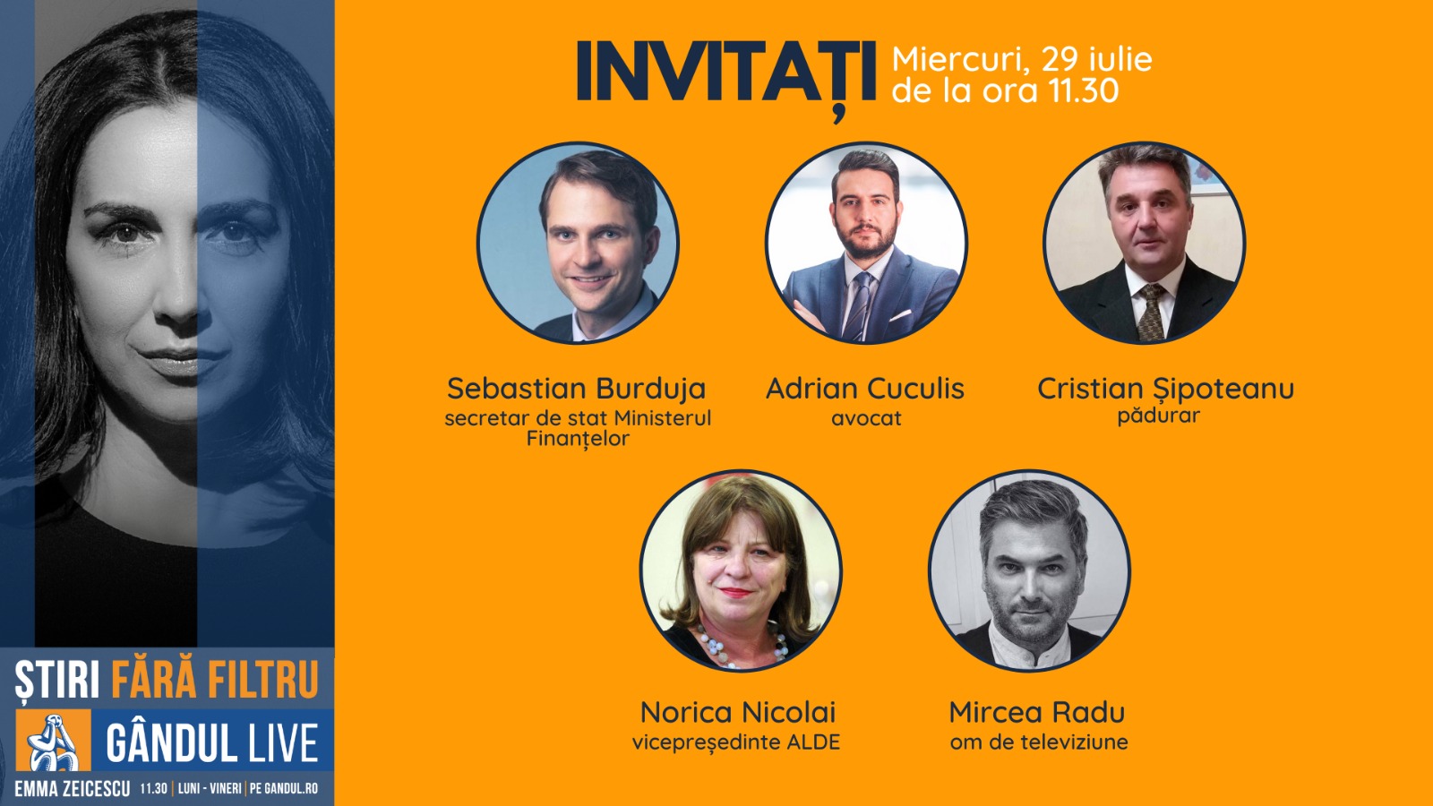 Sebastian Burduja, secretar de stat în cadrul Ministerului Finanțelor Publice (MFP), se află printre invitații Emmei Zeicescu la ediția Gândul LIVE de miercuri, 29 iulie, de la ora 11.30. Printre invitați se mai află și: […]