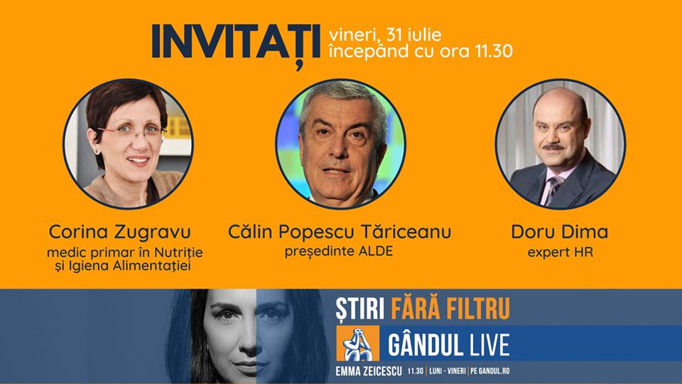 Președintele ALDE, Călin Popescu Tăriceanu, se află printre invitații Emmei Zeicescu la ediția Gândul LIVE de vineri, 31 iulie, de la ora 11.30