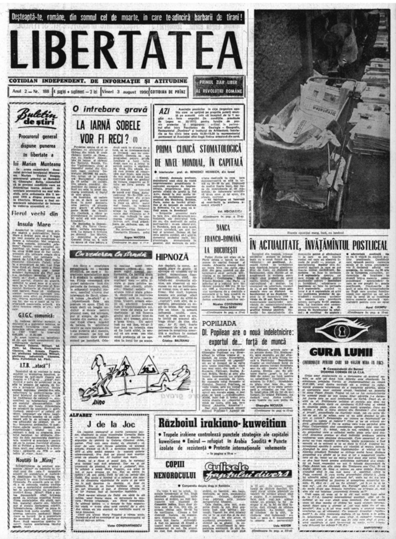 Ziarul Libertatea din 3 august 1990 pag. a 3-a