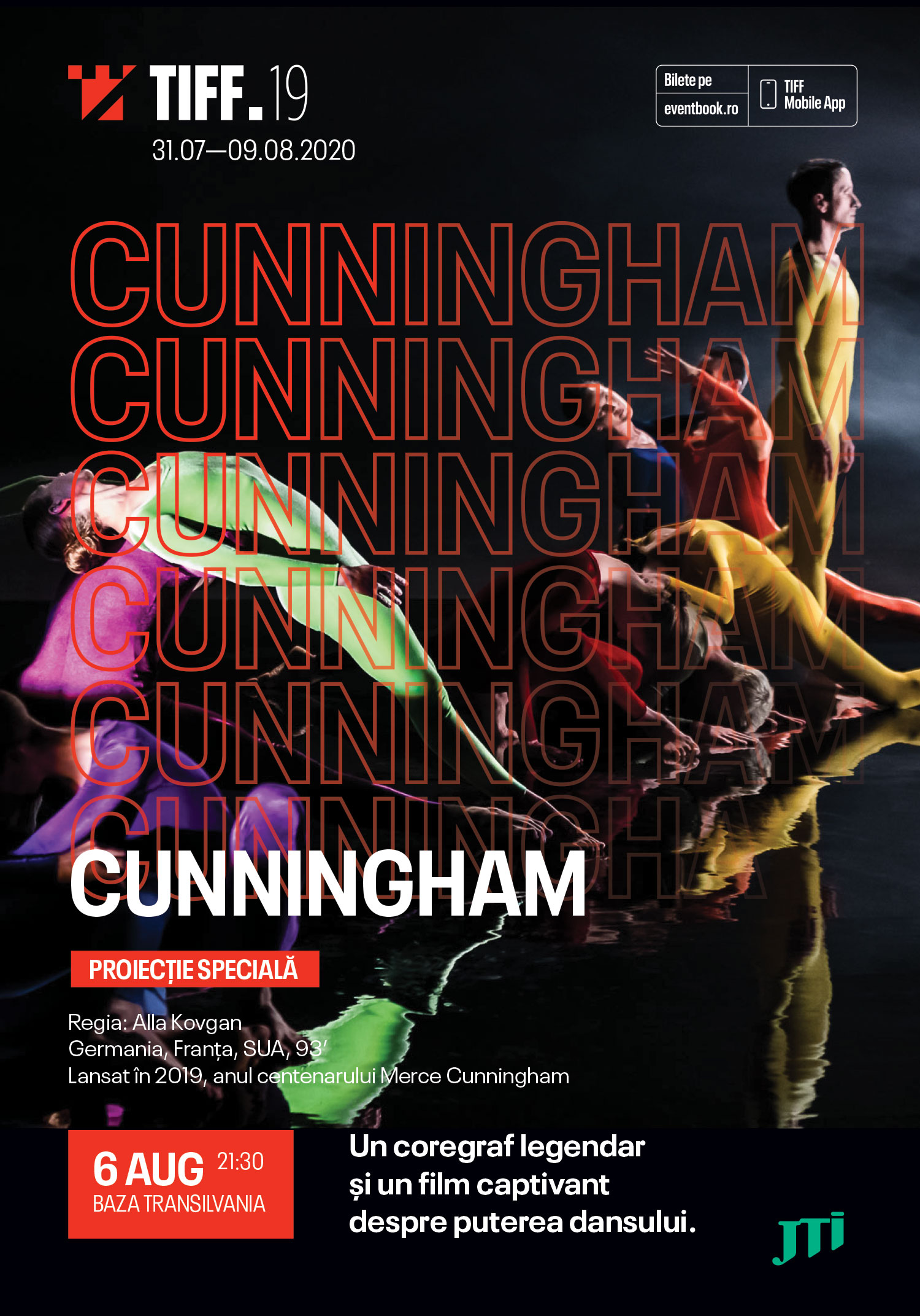 JTI va prezenta și în acest an la Transilvania International Film Festival (TIFF) un film cu și despre dans. Pe 6 august, ora 21:30, la Club Transilvania din Cluj, va avea loc proiecția în aer liber a filmului „Cunningham”, regizat de Alla Kovgan. Filmul, realizat în 2019 pentru a marca un secol de la nașterea lui Merce Cunningham, surprinde evoluția coregrafului american începând cu primii ani de dans și până când devine unul dintre cei mai vizionari și influenți artiști ai lumii. Tehnologia 3D va permite publicului să facă o călătorie senzorială, ca o imersiune în lumea legendarului coregraf.