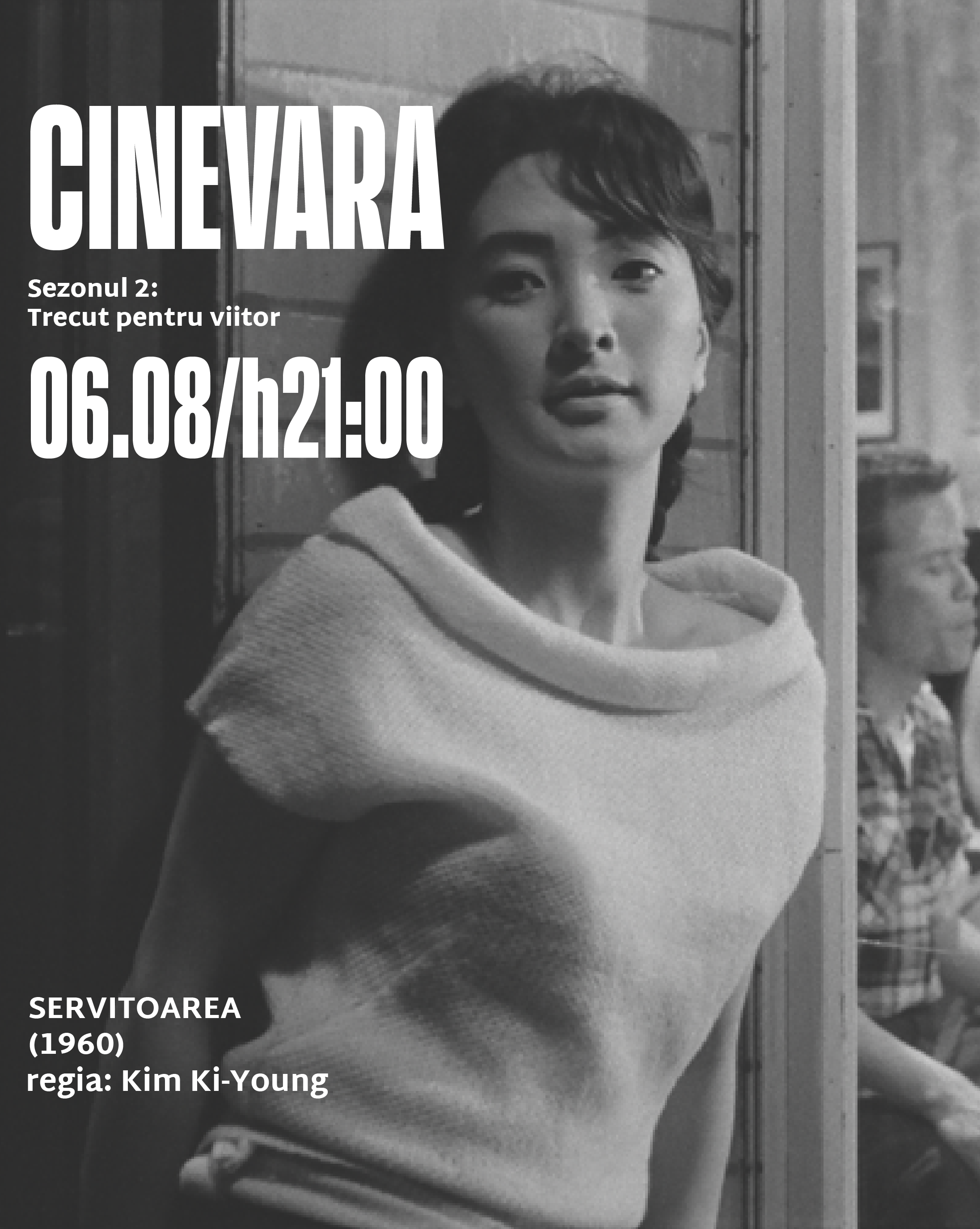 Joi, 6 august, de la ora 21:00, în grădina Rezidenței BRD Scena9 (Str. I.L. Caragiale 32), va fi proiectat filmul sud-coreean Servitoarea, regizat de Kim Ki-young, în cadrul seriei de proiecții de film în aer liber CINEVARA. Accesul se va face pe bază de bilet, achiziționat prin Eventbook, locurile disponibile fiind limitate.