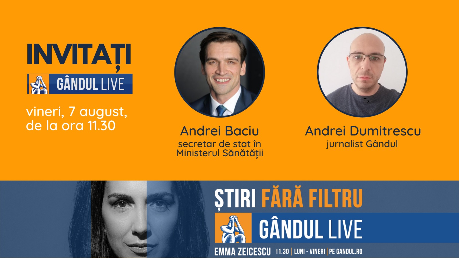 Andrei Baciu, secretar de stat în cadrul Ministerului Sănătății, se află printre invitații Emmei Zeicescu la ediția Gândul LIVE de vineri, 6 august, de la ora 11.30