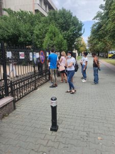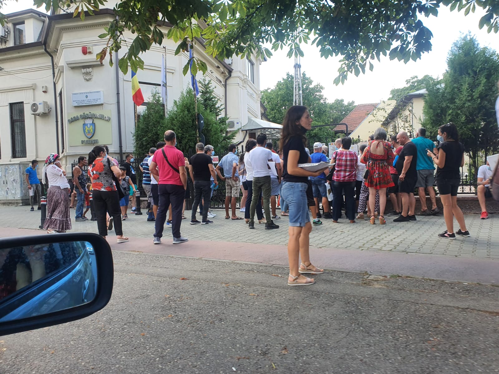 Pauza de masa la SPCLEP Ploiesti/Ploieștenii batjocoriți de subordonatii primarului liberal Adrian Dobre/Oamenii tinuti ca „vitele”, in afara portilor inchise cu „lanturi”, pe bulevard