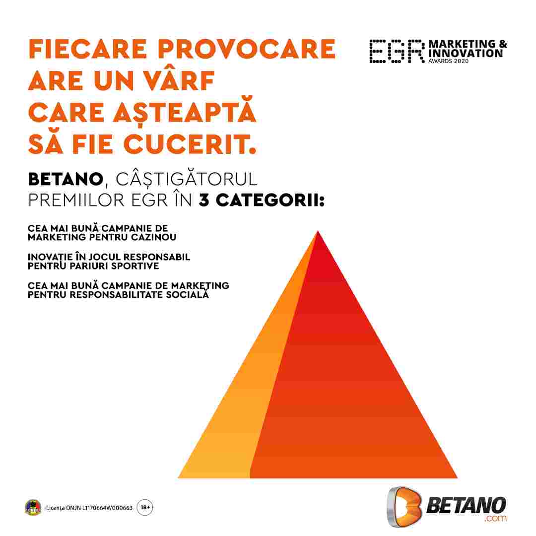 EGR Marketing & Innovation Awards este cea mai importantă competiție cu premii pentru cei mai creativi și inovatori jucători din industria jocurilor de noroc, fiind distinși cei care și-au depășit limitele și au inovat la nivel de produs, de comunicare sau de activitate în ultimul an. În competiție au participat cei mai mari jucători ai industriei din lume, iar BETANO a primit trei premii întâi la următoarele categorii: