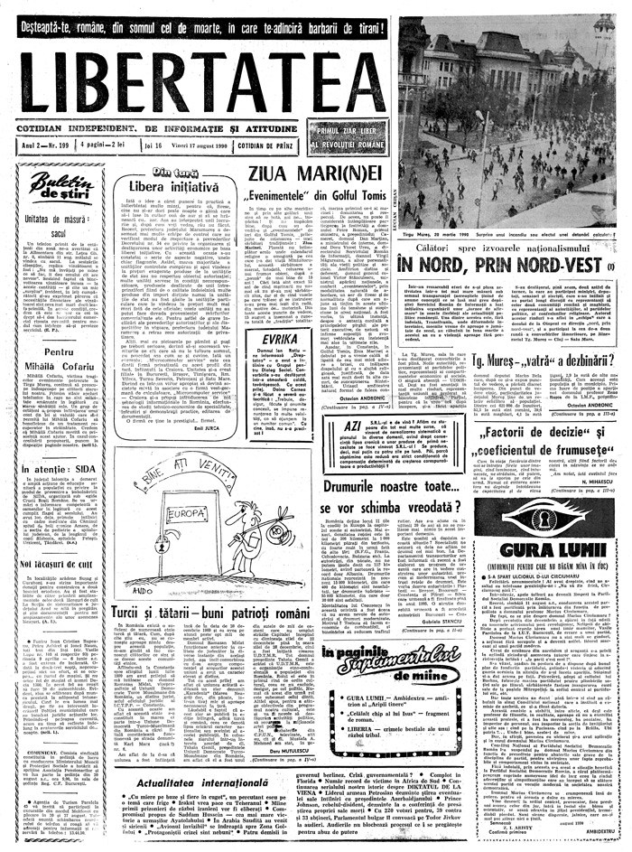 Ziarul Libertatea din 16 august 1990 pag. 1-a ►