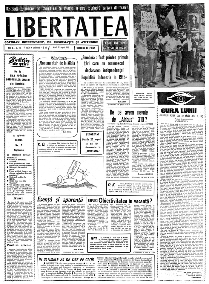 Ziarul Libertatea din 17 august 1990 pag. 1-a ►