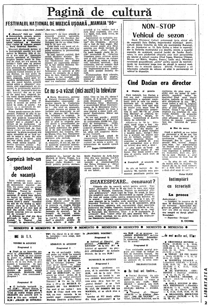 Ziarul Libertatea din 25 august 1990 pag. a 6-a ►