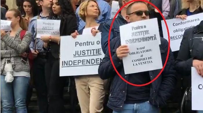 Mentionam ca Laurentiu Marius Grecu a participat in primavara anului 2018 la protestul de pe treptele Curtii de Apel Bucuresti impotriva modificarilor la legile justitiei (foto 2).