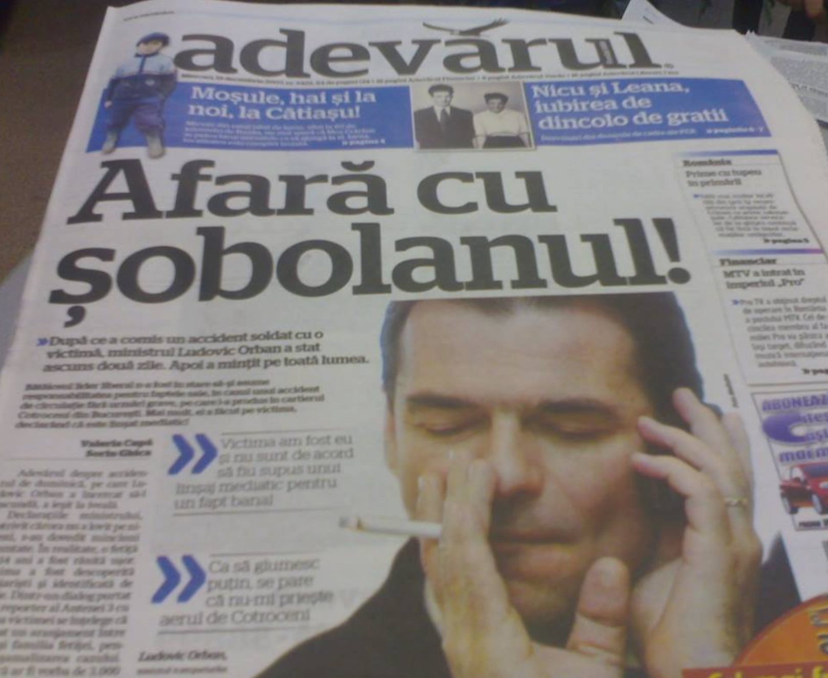In urma cu multi ani, un ministru betiv al transporturilor (care si in plina pandemie servea in birou, fuma si incalca legile nepurtand masca), lua Audi-ul ministerului, cel mai probabil baut, facea accident si lovea o persoana, dupa care fugea de politie si statea ascuns, incercand sa musamalizeze cu ajutorul unui alt ministru de interne, bagabont, coleg de partid. Acum, dupa mai bine de un deceniu, un alt ministru al transporturilor (responsabil cu infrastructura si cu siguranta infrastructurii) cu bolid de la minister si sluga de la SPP ca sofer, depaseste pe linie continua pe infrastructura pe care il doare in fund sa o gestioneze, pentru ca el are masina de minister, girofar si SPP-ist, el fiind autorul moral al accidentului si a contraventiilor legate de codul rutier, cu exceptia situatiei in care era drogat sau rapit (si nu vedea din portbagaj ca SPP-istul lui depaseste pe linie continua). Paradoxal, ministrul betiv din trecut al transporturilor este acum premier, dupa ce in prealabil a devenit sluga serviciilor prin dosarul cu UTI (clasat cu 2-1), dosar in care procurorii ,,drepti” ai DNA s-au impiedicat ca ultimii complici. Precedentul ministru betiv al transporturilor nu sufla o vorba despre demiterea actualului coleg de gasca, care, ca si el, nu da doi bani pe lege. Nu e de mirat, a fost in aceeasi situatie. Insa, Presedintele Republicii, care in trecut a furat mai multe case pe baza unui testament falsificat, intrebat fiind de presa daca actualul ministru al transporturilor ar trebui sa demisioneze, raspunde sec si tamp: ,,nu cred”. Asta, in caz ca se mai indoia cineva ca si actuala garnitura de parveniti, manivele ale fostei securitati, are aceeasi atitudine fata de lege ca si precedentii: ei nu dau doi bani pe lege si va trateaza pe toti, ca prosti. In foto gasiti caracterizarea facuta in ziarul fostului angajator al lui Ludovic ,,Sobolan” Orban – Dinu Patriciu, cel care il platea pe actualul premier din bani furati de la Rompetrol, dezvaluie analistul Radu Teodor Soviani. (Cristina T.).