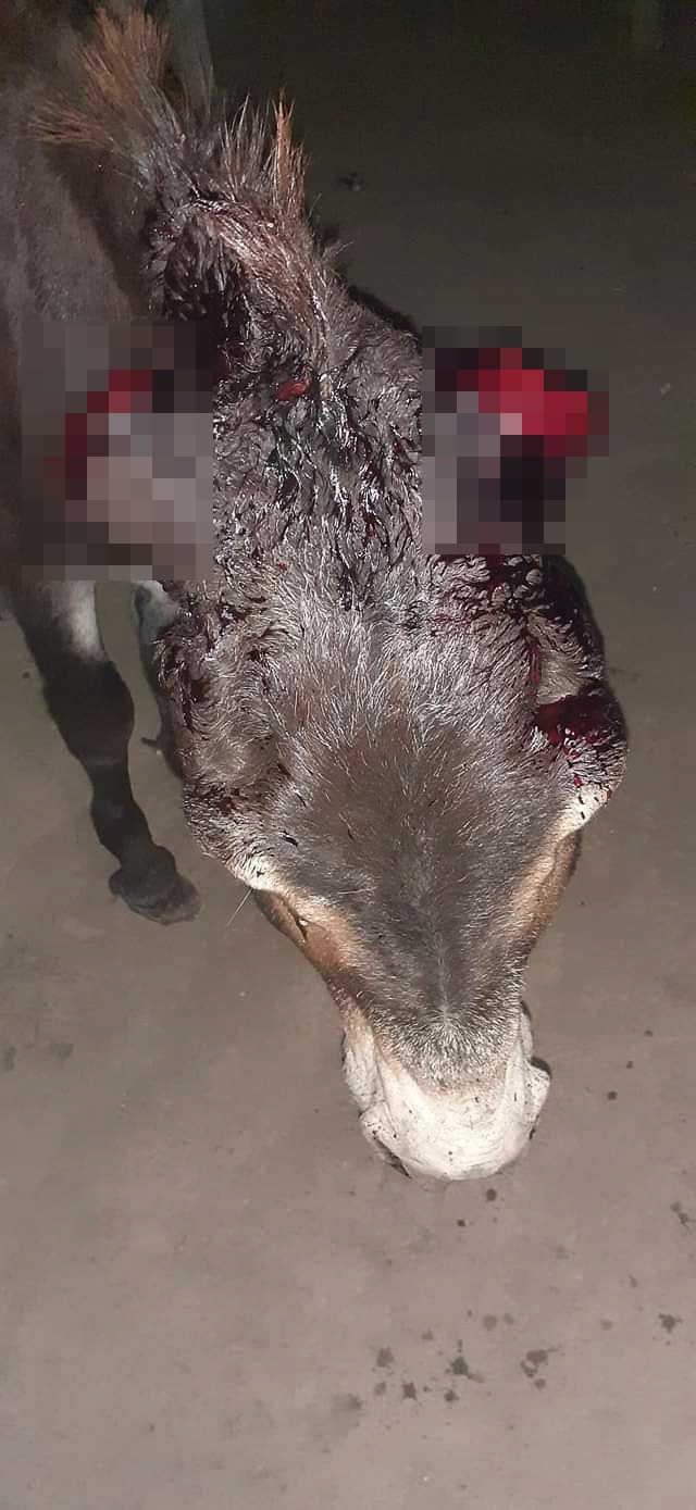 Un măgar a fost găsit pe un câmp cu urechile tăiate după ce fusese lăsat de proprietar pe câmp.