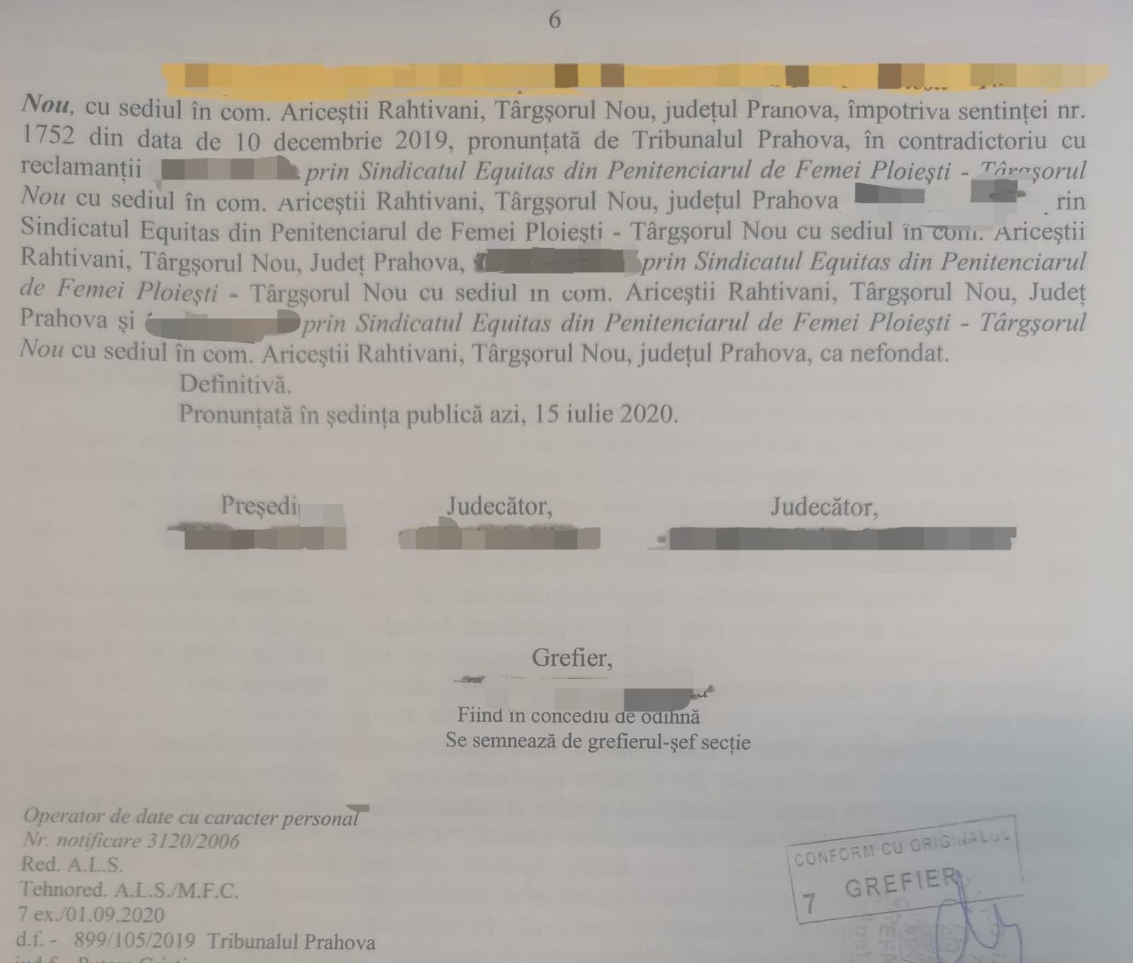 Conducerea Penitenciarului Târgșor a primit lovitura de gratie de la Sindicatul EQUITAS si Curtea de Apel Ploiești