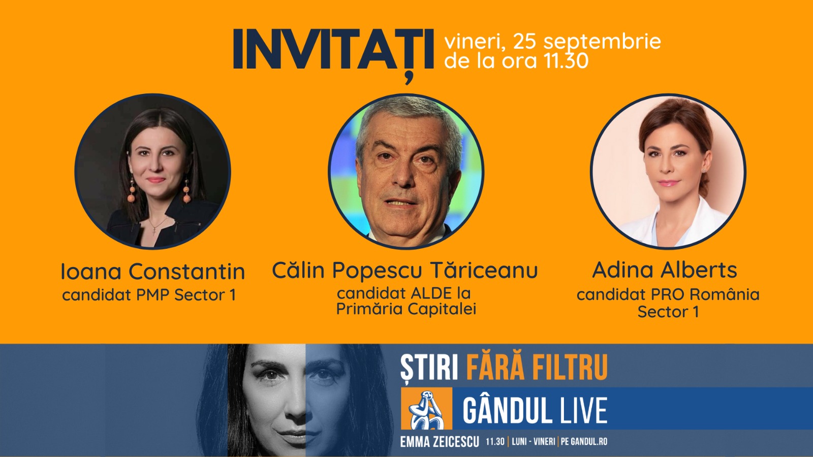 Călin Popescu Tăriceanu, candidatul ALDE la Primăria Capitalei, se află printre invitații Emmei Zeicescu la ediția Gândul LIVE de vineri, 25 septembrie, de la 11.30