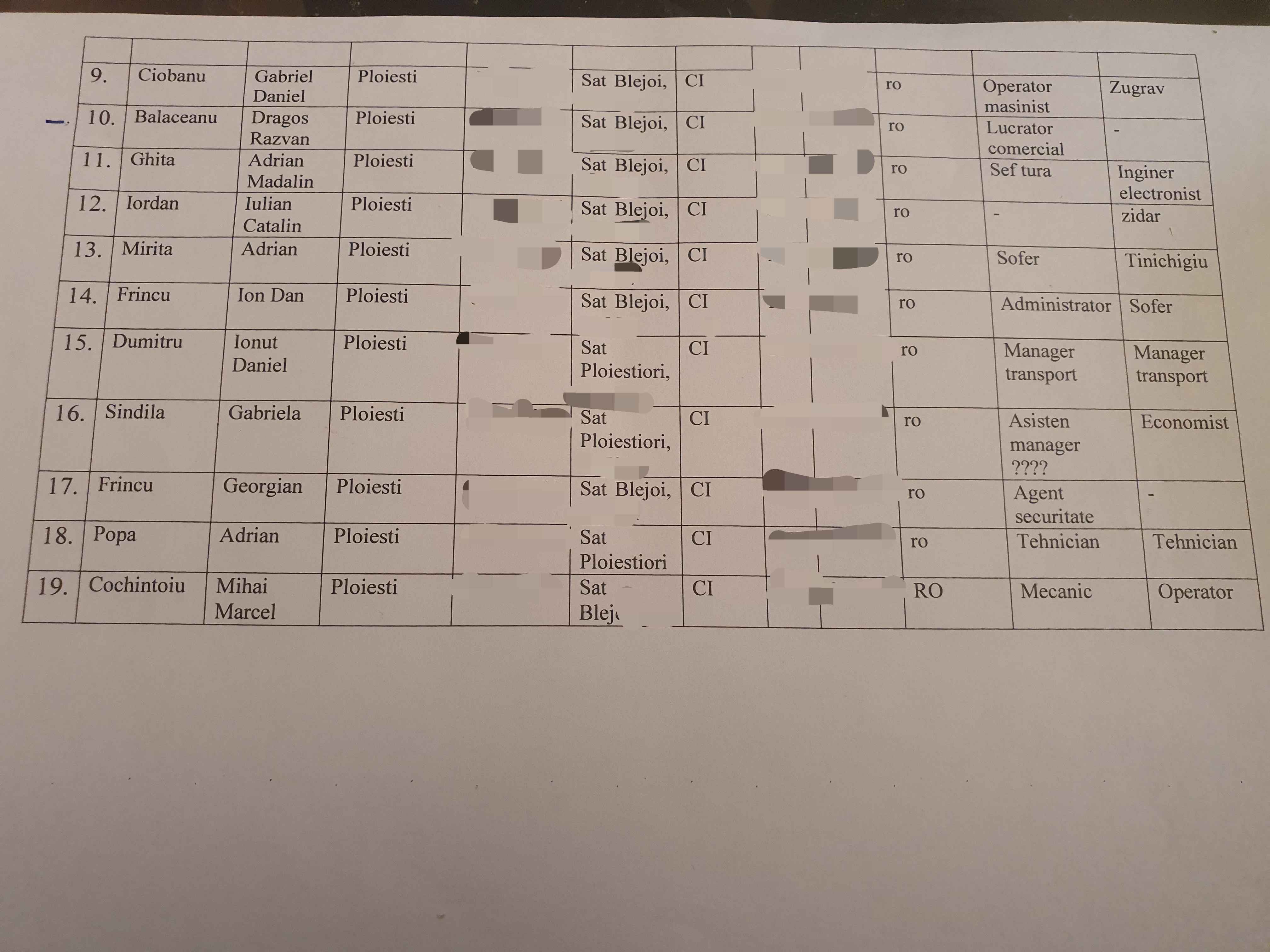 „Numitul Grigore Stelian Aurel, angajat in cadrul Primariei comunei Blejoi incepand cu data de 01.05.2013, Compartiment Politie Locala, iar la cerere a fost mutat in cadrul Biroului Financiar-Contabil unde si-a desfasurat activitatea pana la data de 28.02.2019.