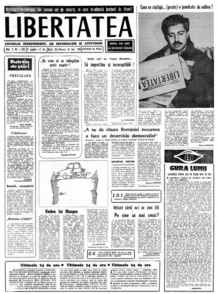 Ziarul Libertatea din 25 septembrie 1990 pag. 1-a ►