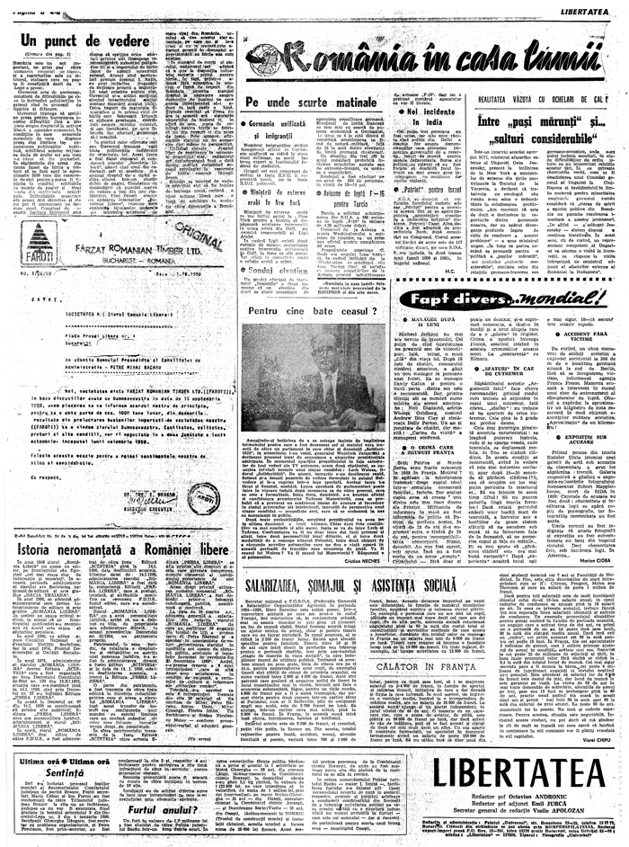 Ziarul Libertatea din 3 octombrie 1990 pag. a 2-a ►