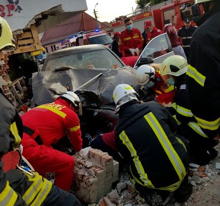 Potrivit Inspectoratului de Poliţie Judeţean (IPJ) Satu Mare, un autoturism a intrat în coliziune cu un alt autovehicul, după care a fost proiectat într-o clădire, lovind un pieton.
